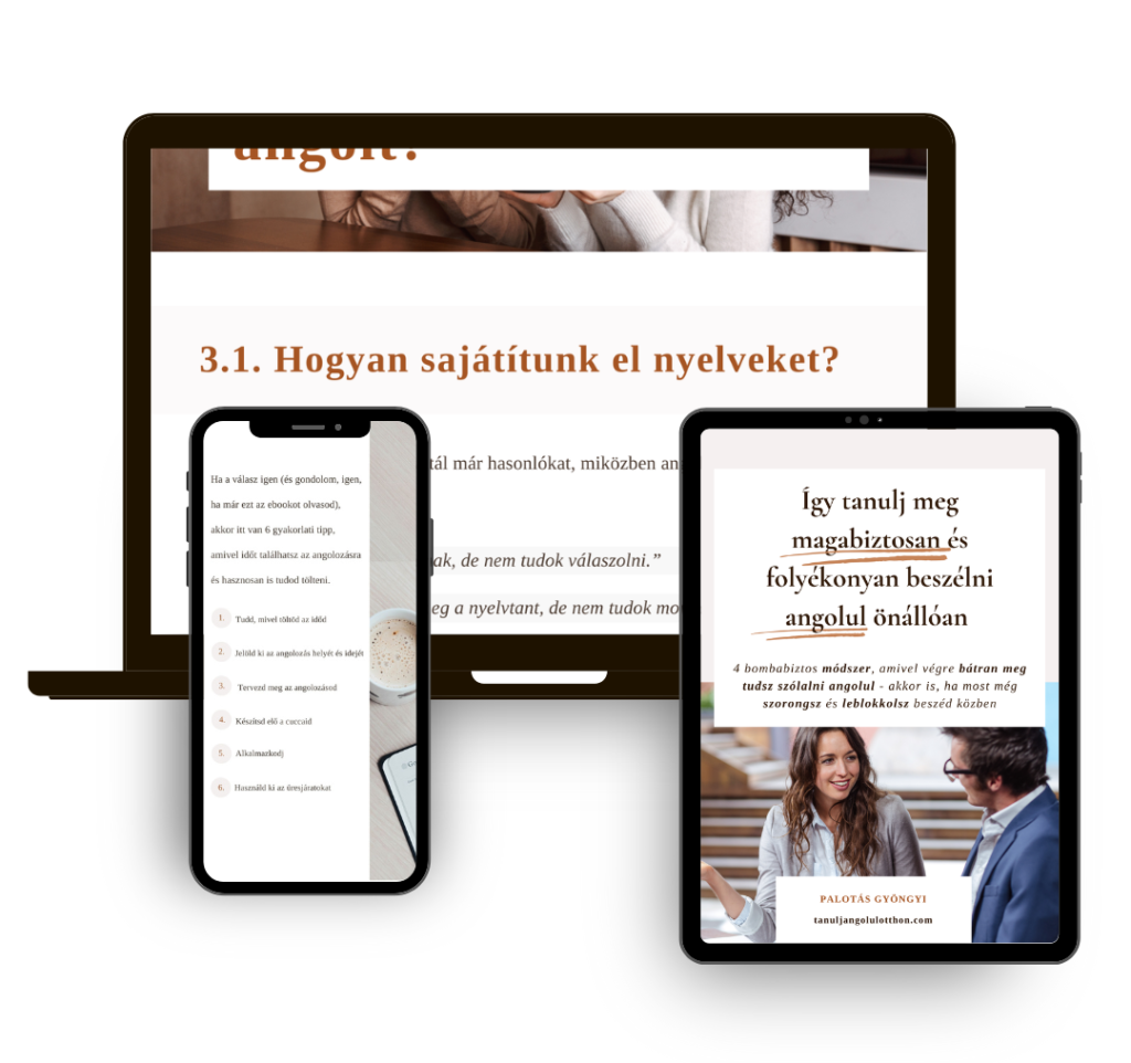 Ez tanfolyam segít, hogy meg tudj tanulni magabiztosan és folyékonyan beszélni angolul önállóan. Elsajátítod mind a 4 önálló beszédfejlesztési módszerem, és kialakítasz magadnak egy angol tanulási rendszert, amivel képes leszel egyedül is kitartó és motivált maradni, hogy el tudd érni a céljaid.